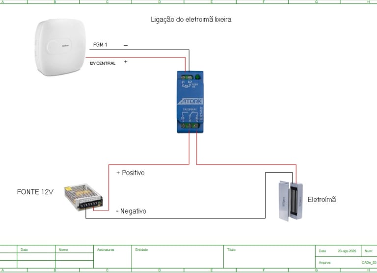 Diagrama de ligação de eletroímã em lixeiras acionado através da PGM.